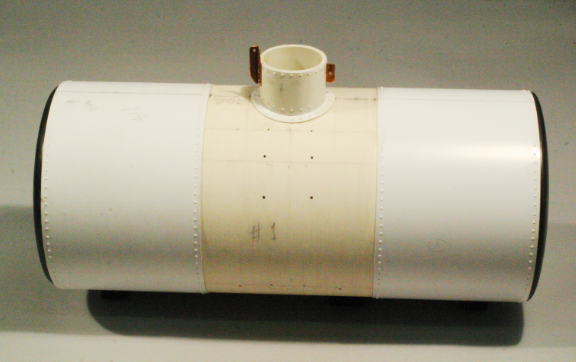 The ladder giving access to the tank top, a grab iron, and the hardware for the tank lid, are all bolted to the tank with 0-80 screws, allowing the parts to be painted a different color than the tank and be applied later. The gasketed tank lid can be secured closed while transporting the water.