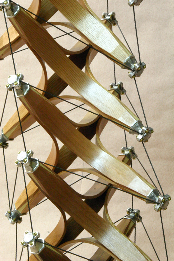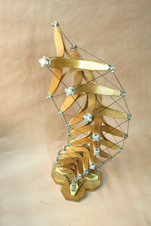 steam bent Cedar struts, joined to 4 Poplar tips. Each tip has