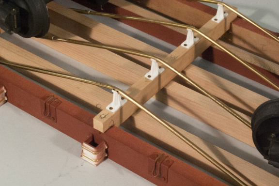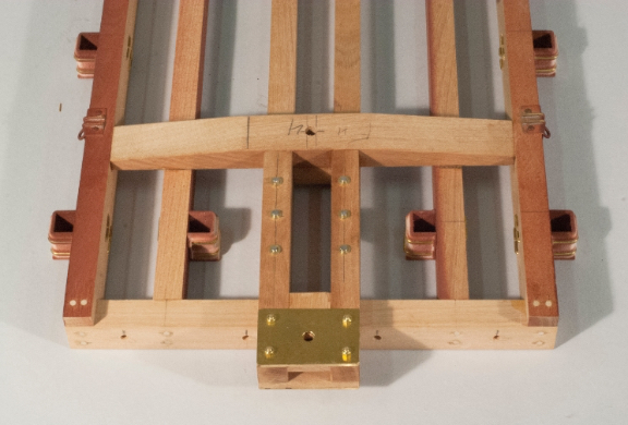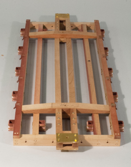 The needle beam in the middle of the frame supports 3D printed queen posts which support the truss rods.