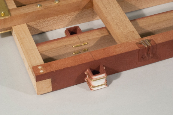 The link and pin coupler pockets a reenforced with brass plates top and bottom, through bolted to the timber frame.