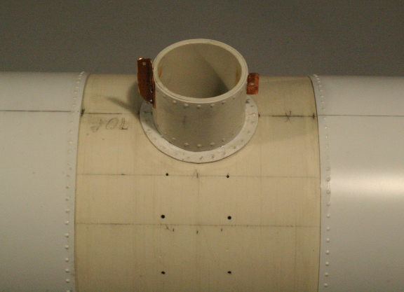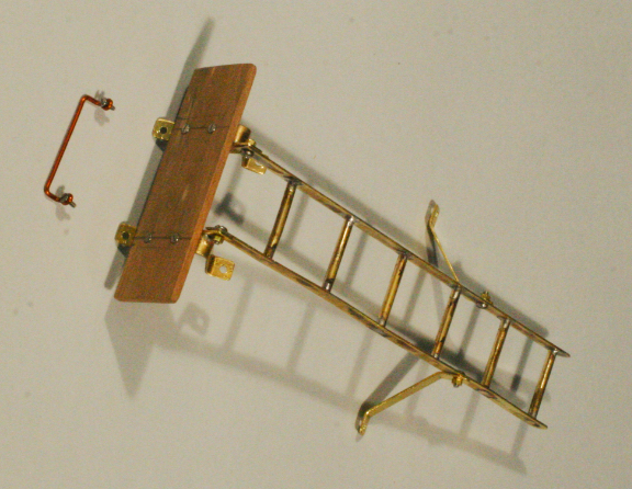 The ladder giving access to the tank top, a grab iron, and the hardware for the tank lid, are all bolted to the tank with 0-80 screws, allowing the parts to be painted a different color than the tank and be applied later. The gasketed tank lid can be secured closed while transporting the water.