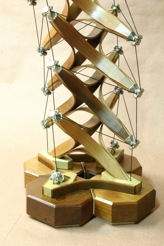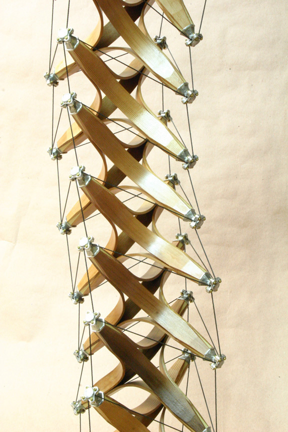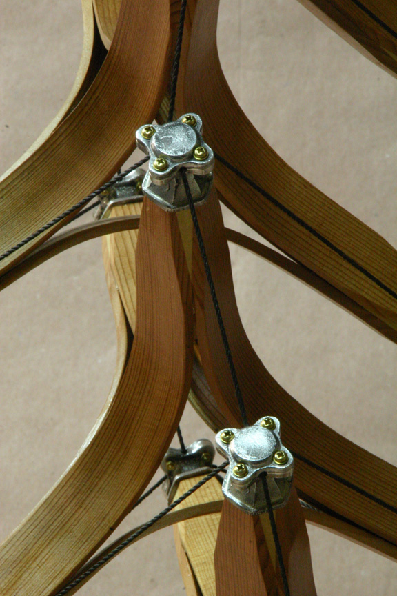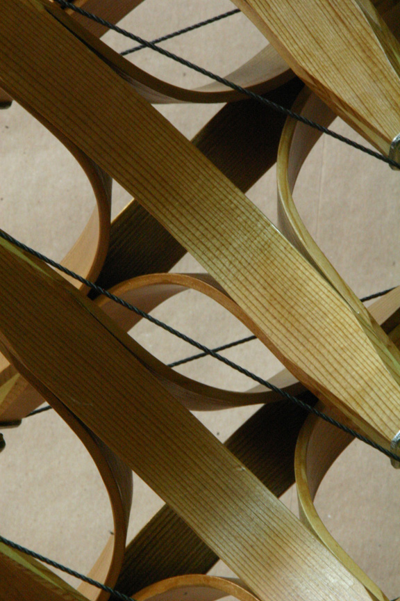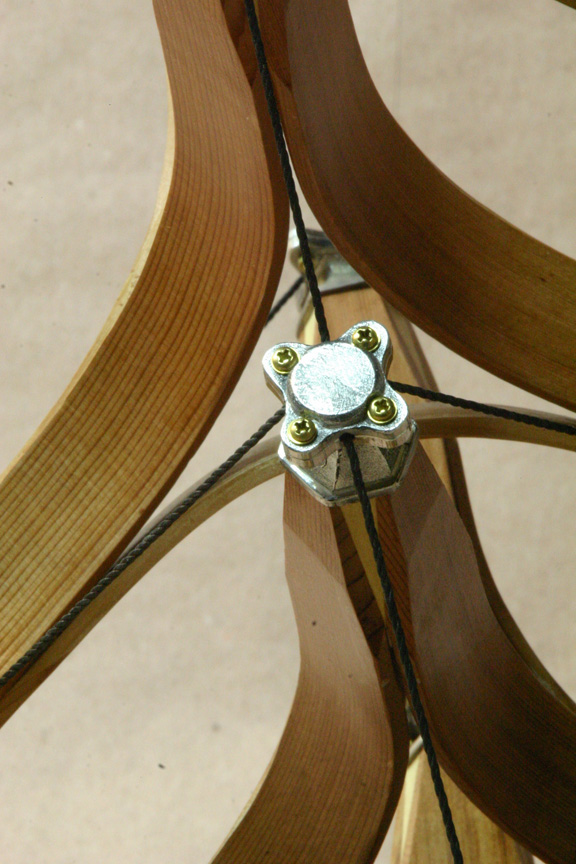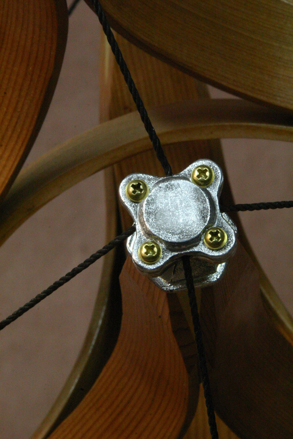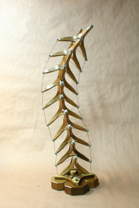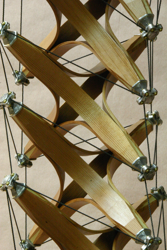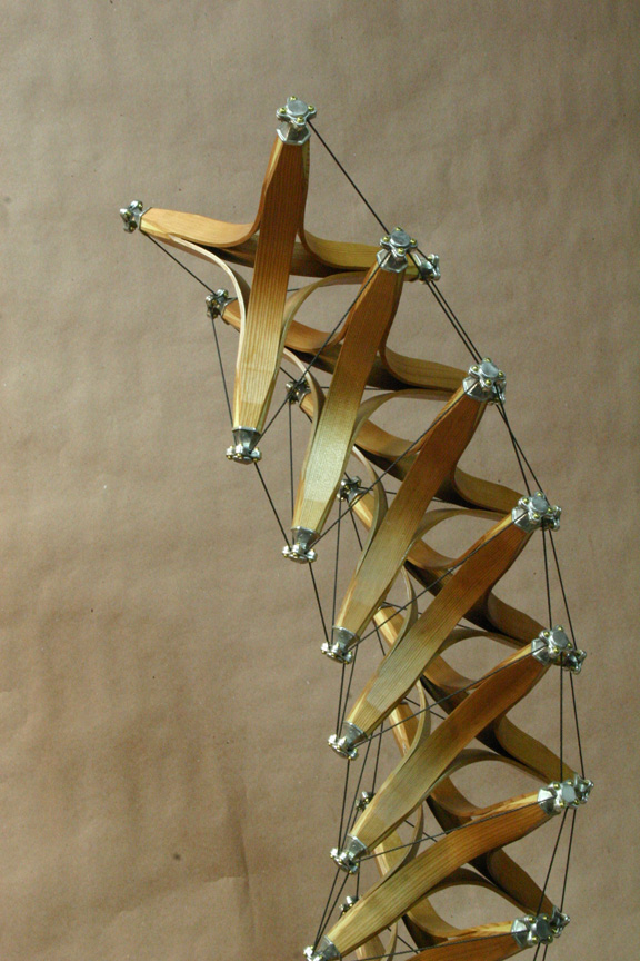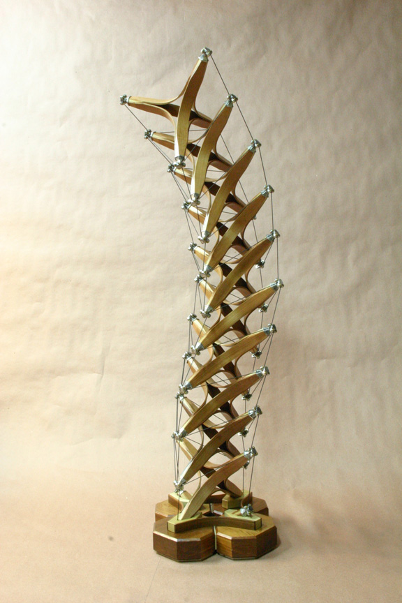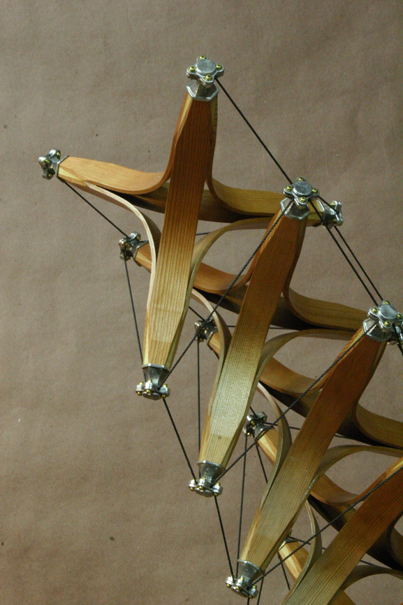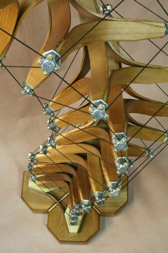 steam bent Cedar struts, joined to 4 Poplar tips. Each tip has