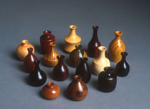 | In 1977 I bought a miniature lathe, built by Unimat. This was the ultimate tool for a model maker, when I was growing up. The opportunity to purchase one used was too much to pass up, even though I had no idea what I would use it for at the time. I started turning small vases, to sell at shows being presented by the Mendocino Woodworkers. | ![]() |
