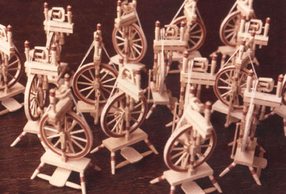 In January of 1981, I built 16 of another spinning wheel. This is a copy of a Swedish spinning wheel, which I made in Maple, as was the original. Again all the parts turn, but won't really spin fiber.