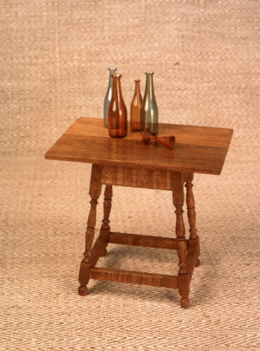 In June of 1982, I built 16 of these tavern style table. This was a very sturdy and durable table design. These are made of Broadleaf Maple, with quilted tops.