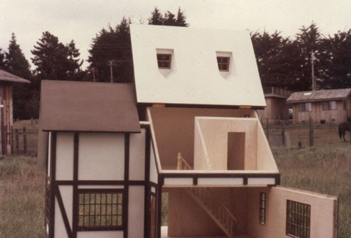 | I was hired to build a limited run of six of these houses for a shop in the Bay Area. The exteriors were complete, but the interior was unfinished, allowing the final customer to customize them to their satisfaction, which is the primary interest of the dollhouse world. |