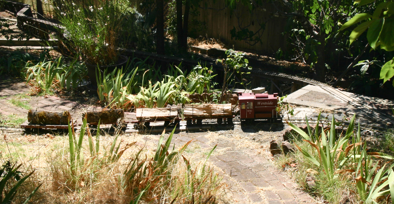 Here is the train at the firewood loading spur, with logs already chained down, ready for the journey.