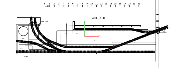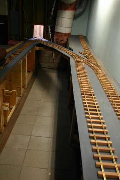Here is the track plan as it now stands. This is a "behind the scenes" storage yard, so there is probably never going to be any ballast on the track, or a painted backdrop.