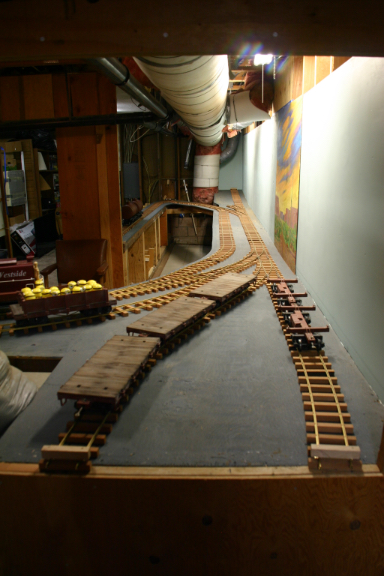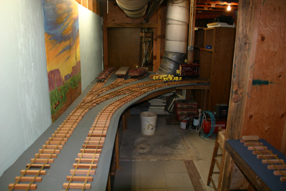 After several years of building freight cars and a locomotive, it was time to start constructing and laying track. I had debated between building a storage yard into my shop area or in the basement to the north of the garage and guest room. There was much more room in the basement, but it was an additional three feet higher than the backyard. As I started looking at how much space any kind of yard would take, the basement became the obvious choice. Building in 1" scale is HUGE! Even a sharp #3 switch is almost 30" long.