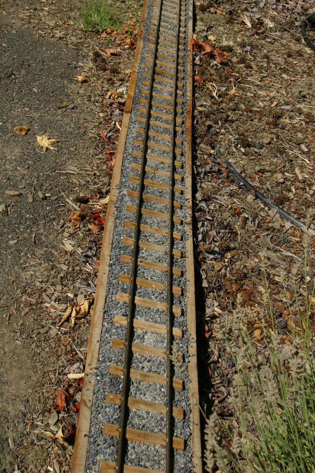 Trim pieces were added along the edge of the roadbed to contain ballast.