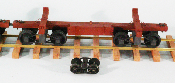 I want to haul actual firewood, which is about 16" long, and set the basic car length at 20". After a little research on the web and in my library, I designed a simple skeleton log car, and set out to build a set of three. I am a woodworker, so my shop made this kind of fabrication easy.